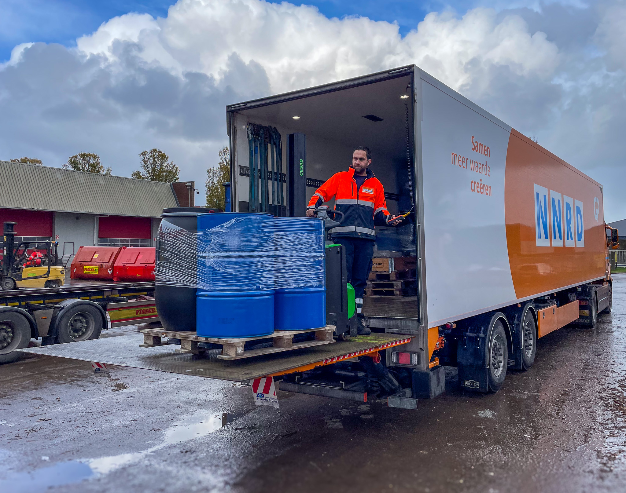 Jesmer: “Ik haal dagelijks gevaarlijk afval op bij bedrijven, organisaties en zorginstellingen in Noord-Nederland. Dat kan van alles zijn: verfblikken, olie, chemicaliën, medisch afval, spuitbussen… eigenlijk alles wat niet als restafval kan worden ingezameld. “Klanten verzamelen het in speciale vaten of containers, en ik zorg ervoor dat het veilig wordt opgehaald en vervoerd.”