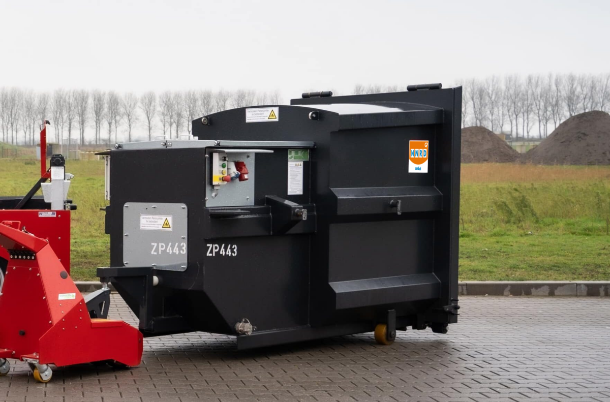 - De stationaire perscontainer, die groter is dan de ‘standaard’ perscontainers en bijvoorbeeld geschikt is voor een continue toevoer van afval.